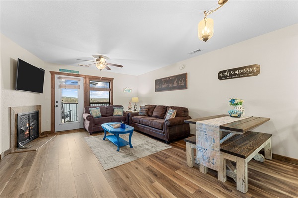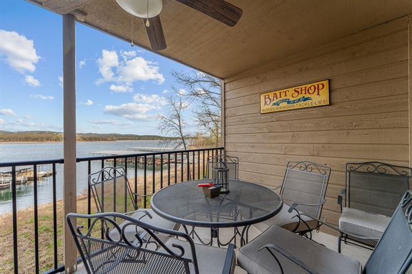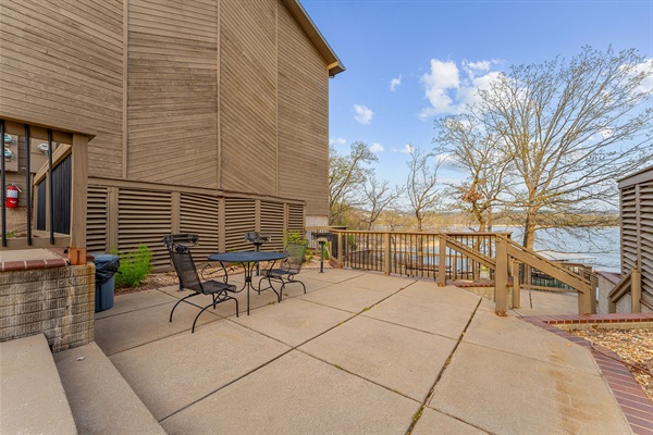 Patio table and chairs with a lakeside view!