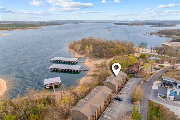 Outside of the building and distance to the boat dock. Our boat slip is located on the middle boat dock