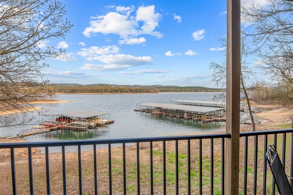 Dusk view from the deck of the lake and boat slips